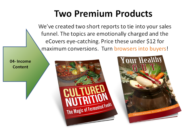 The content team at PLR Pump has designed a complete income earning funnel designed to attract people looking for health solutions specific to healthy eating topics.